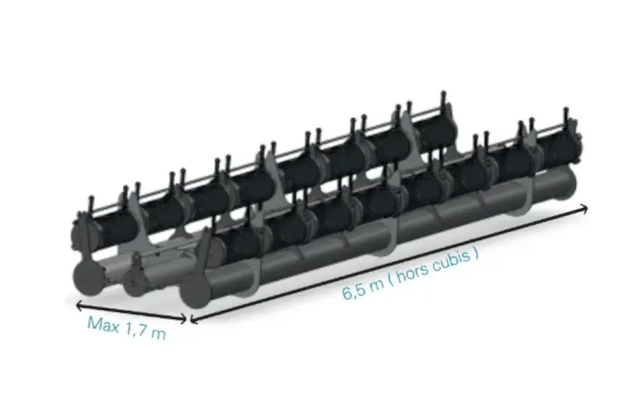 Each module contains 16 baskets, with a capacity of 6 to 8 kilograms of oysters per basket. The system performs optimally in tanks with a minimum depth of 75 cm and features low energy consumption, with a maximum power requirement of just 1.5 kW. Built from durable, easy-to-maintain HDPE, Roll’Oyster is simple to install and integrates seamlessly into existing infrastructure.
